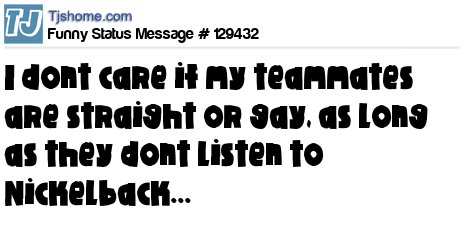 X is i dont care if my teammates are straight or gay, as long as they dont listen to Nickelback...