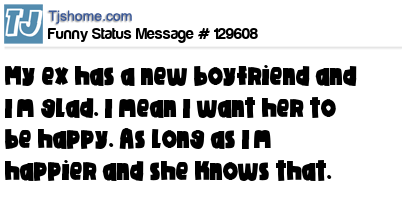 X is My ex has a new boyfriend and I’m glad. I mean I want her to be happy. As long as I’m happier and she knows that.