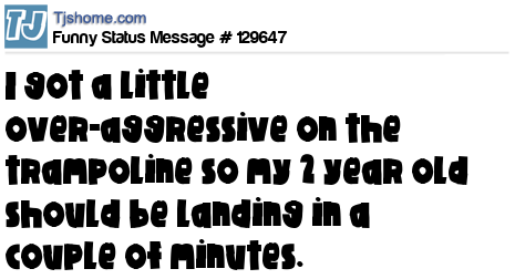 X says I got a little over-aggressive on the trampoline so my 2 year old should be landing in a couple of minutes.