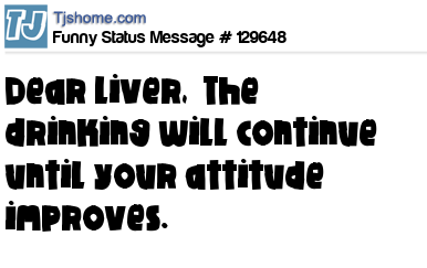 X says Dear Liver, The drinking will continue until your attitude improves.