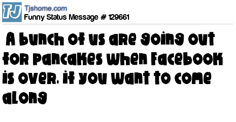 - # 129640 A bunch of us are going out for pancakes when Facebook is over, if you want to come along