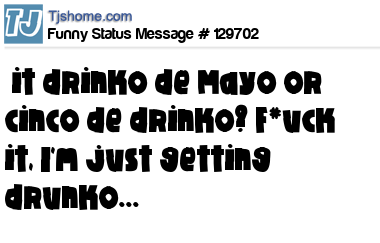 X says it drinko de Mayo or cinco de drinko? F*uck it, I'm just getting drunko...