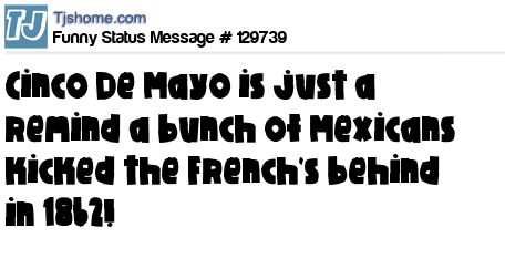 X is Cinco De Mayo is just a remind a bunch of Mexicans kicked the French's behind in 1862!