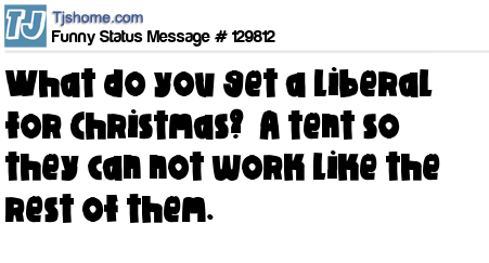 X says What do you get a liberal for Christmas? A tent so they can not work like the rest of them.