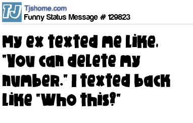 - # 119620 Girlfriend texted me, "I have tried my best to make this relationship work but I seem to be the only one trying. So I have decided to break up with you and move on with my life. Can you delete my number and never contact me." I replied, "Who's this?"