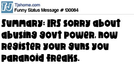 X  Summary: IRS sorry about abusing govt power, now register your guns you paranoid freaks.