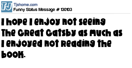 X says I hope I enjoy not seeing The Great Gatsby as much as I enjoyed not reading the book.