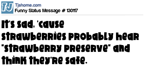 X says It's sad, 'cause strawberries probably hear "strawberry preserve" and think they're safe.