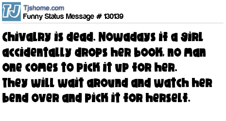 X says Chivalry is dead. Nowadays if a girl accidentally drops her book, no man one comes to pick it up for her. They will wait around and watch her bend over and pick it for herself.