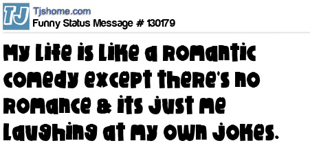 - # 139656 My life is like a romantic comedy expect there's no romance and it's just me laughing at my own jokes