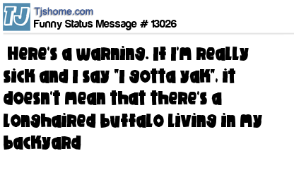 X is Here's a warning. If I'm really sick and I say "I gotta yak", it doesn't mean that there's a longhaired buffalo living in my backyard
