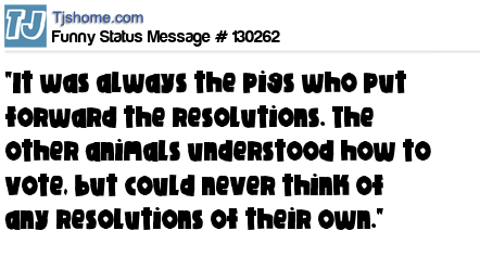 X "It was always the pigs who put forward the resolutions. The other animals understood how to vote, but could never think of any resolutions of their own."