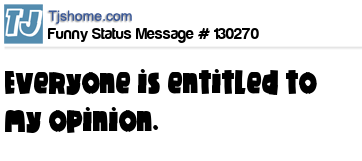 - # 142403 Everyone is entitled to their own opinion even if it is right.