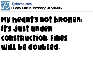 X says My heart's not broken; it's just under construction. Fines will be doubled.