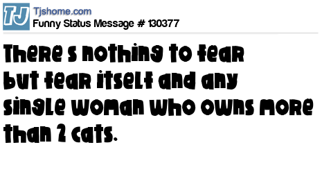 X says There’s nothing to fear but fear itself and any single woman who owns more than 2 cats.