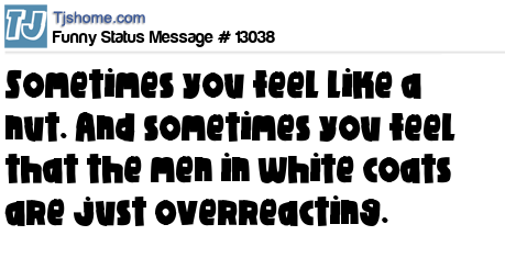 X  Sometimes you feel like a nut. And sometimes you feel that the men in white coats are just overreacting.