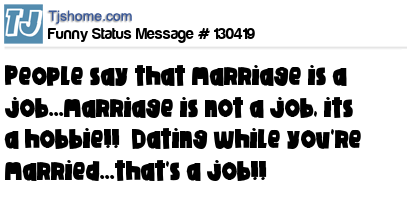 X says People say that marriage is a job...marriage is not a job, its a hobbie!! Dating while you're married...that's a job!!