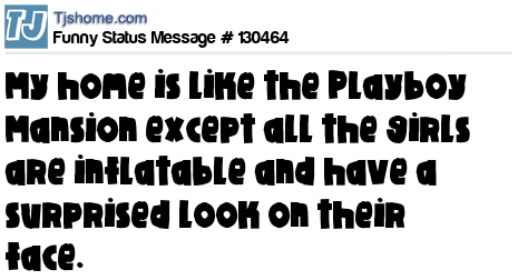 X says My home is like the Playboy Mansion except all the girls are inflatable and have a surprised look on their face.
