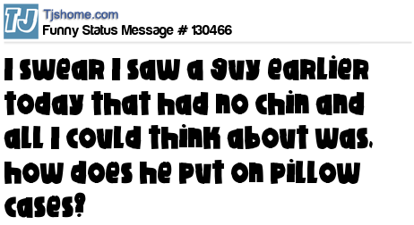 X says I swear I saw a guy earlier today that had no chin and all I could think about was, how does he put on pillow cases?