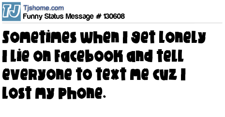 X is Sometimes when I get lonely I lie on Facebook and tell everyone to text me cuz I lost my phone.