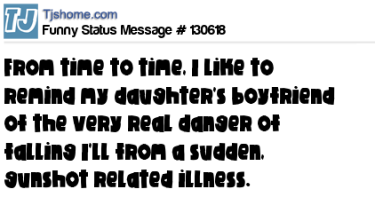 X From time to time, I like to remind my daughter's boyfriend of the very real danger of falling I'll from a sudden, gunshot related illness.