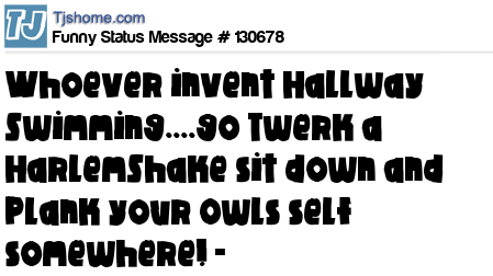 X Whoever invent Hallway Swimming....go Twerk a HarlemShake sit down and Plank your Owls self somewhere! -