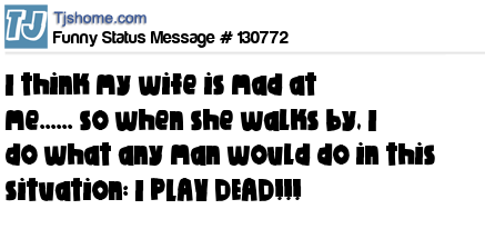 X says I think my wife is mad at me...... so when she walks by, I do what any man would do in this situation: I PLAY DEAD!!!