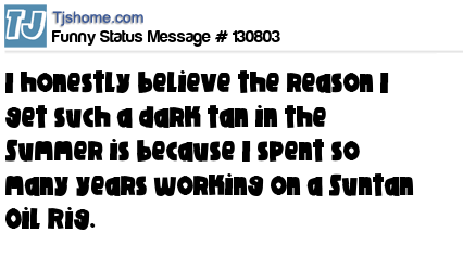 X  I honestly believe the reason I get such a dark tan in the Summer is because I spent so many years working on a Suntan Oil Rig.