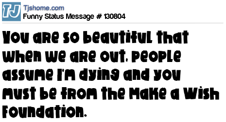 X says you are so beautiful that when we are out, people assume I'm dying and you must be from the Make a Wish Foundation.
