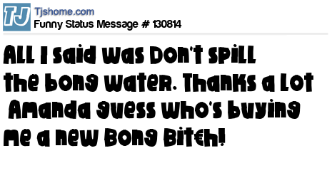 X All I said was Don't spill the bong water. Thanks a lot Amanda guess who's buying me a new Bong Bit€h!