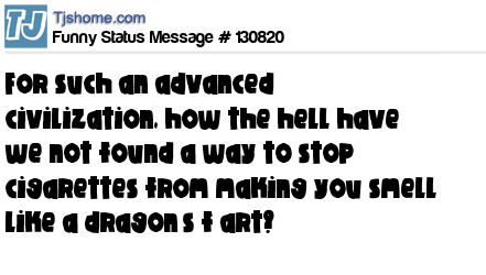X says For such an advanced civilization, how the hell have we not found a way to stop cigarettes from making you smell like a dragon’s f art?