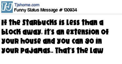 X If the Starbucks is less than a block away, it's an extension of your house and you can go in your pajamas.. That's the law