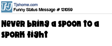 - # 80332 Dear Fork, I thought you should know; you have a son.His name is Spork. -Spoon P.S. He has your hair.