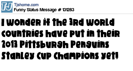X says I wonder if the 3rd world countries have put in their 2013 Pittsburgh Penguins Stanley Cup Champions yet!