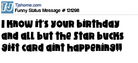 - # 134046 I know it's your Birthday and all but the Starbucks Gift Card thing ain't happening...