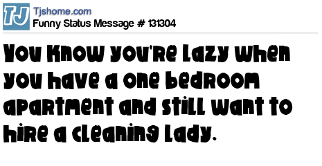 X You know you're lazy when you have a one bedroom apartment and still want to hire a cleaning lady.