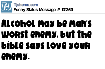 - # 62421 Alcohol may be my worst enemy, but the bible says to love your enemy....