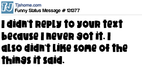 X I didn't reply to your text because I never got it. I also didn't like some of the things it said.