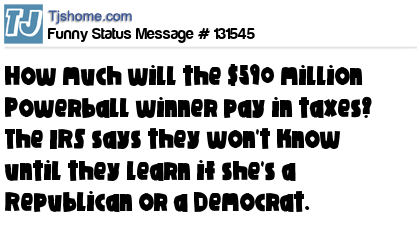 X is How much will the $590 million Powerball winner pay in taxes? The IRS says they won't know until they learn if she's a Republican or a Democrat.