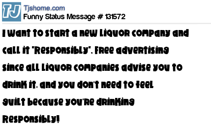 X I want to start a new liquor company and call it "Responsibly". Free advertising since all liquor companies advise you to drink it, and you don't need to feel guilt because you're drinking Responsibly!
