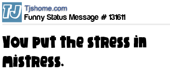 - # 131147 Every wife is a "Mistress" for her husband. "Miss" for one hour and "Stress" for the 23 hours.