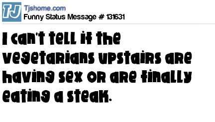 - # 205261 I can’t tell if the vegans upstairs are having sex or are finally eating a steak.