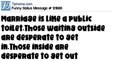 - # 139224 Marriage is like a public toilet. Those waiting outside are desperate to get in. Those inside are desperate to get out.