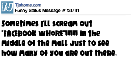 X Sometimes I'll scream out "FACEBOOK WH0RE"!!!!! in the middle of the mall just to see how many of you are out there.