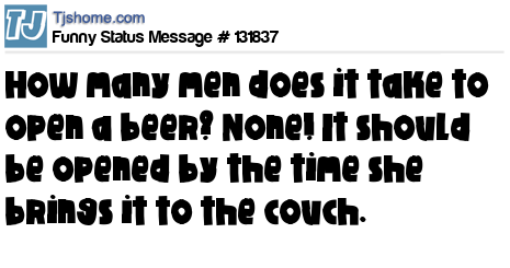 - # 42682 How many men does it take to open a beer? None...it should be open when she brings it to ya.