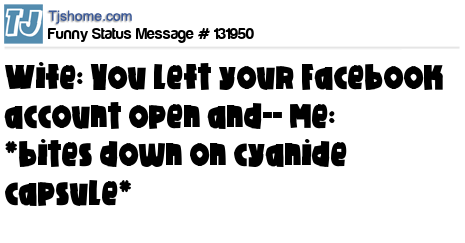 X Wife: You left your Facebook account open and-- Me: *bites down on cyanide capsule*