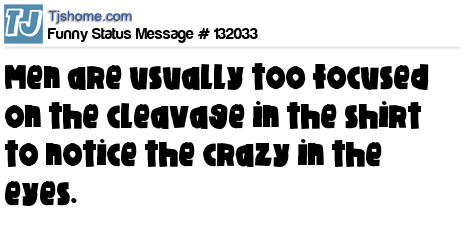 X says Men are usually too focused on the cleavage in the shirt to notice the crazy in the eyes.