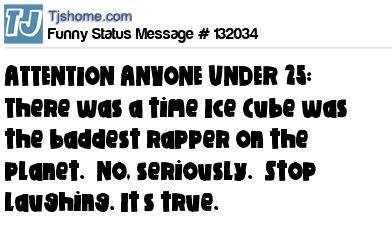 X says ATTENTION ANYONE UNDER 25:  There was a time Ice Cube was the baddest rapper on the planet.  No, seriously.  Stop laughing. It’s true.