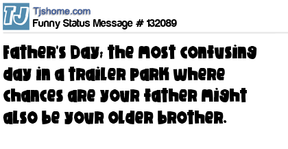 X says Father's Day; the most confusing day in a trailer park where chances are your father might also be your older brother.