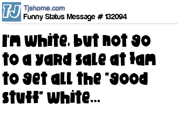 X says I'm white, but not go to a yard sale at 7am to get all the "good stuff" white...